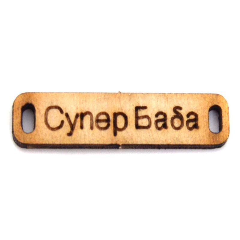 Лазерно рязан дървен елемент - плочка с надпис Супер Баба.