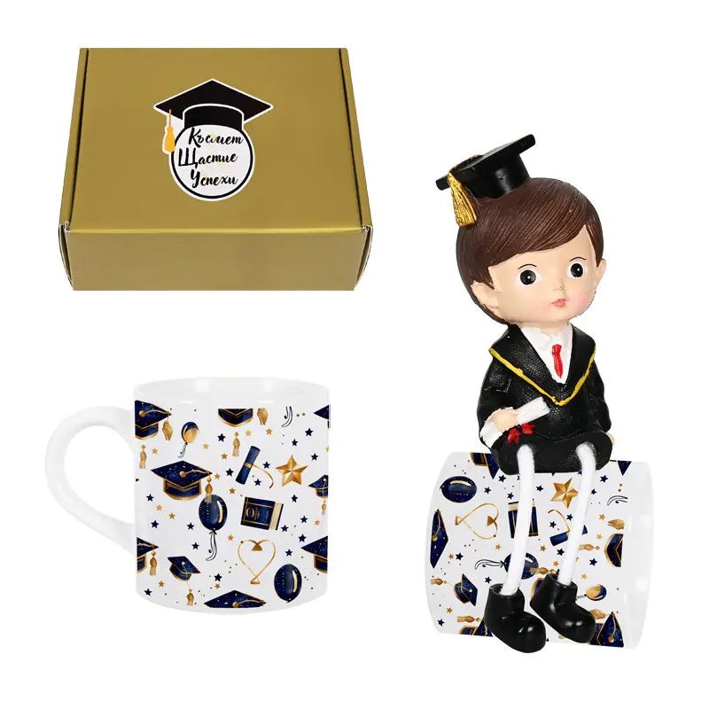 Подаръчен комплект фигурка с чаша "Дипломиране"