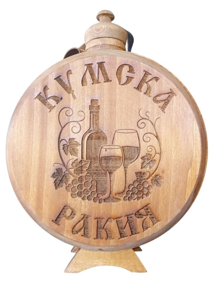 Бъклица 700мл стъкло / лак /– „Кумска ракия с чаши“