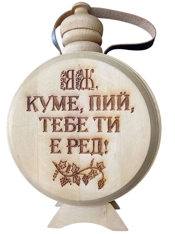 Метална бъклица 750 мл с надпис „Яж куме, пий“ – перфектен избор за кумска ракия.