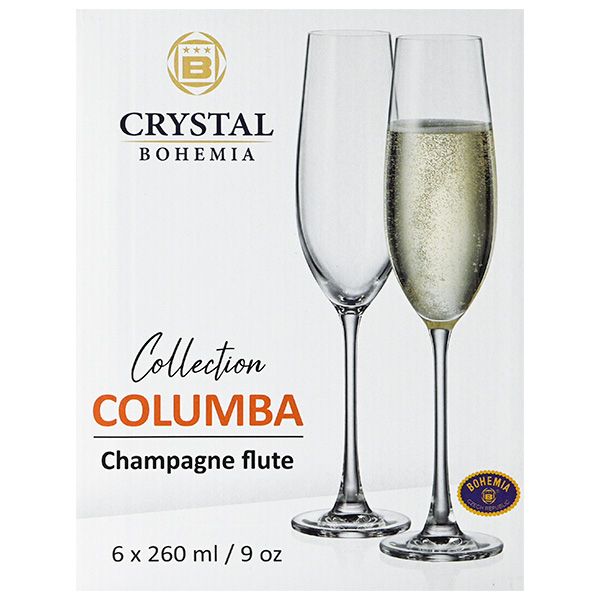 Елегантна чаша за шампанско BOHEMIA Columba Champagne 260 мл, изработена от висококачествен кристал.