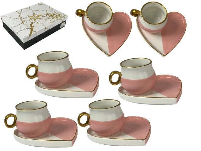 Комплектът включва 6 чаши и 6 съответстващи чинийки, които осигуряват елегантна и удобна презентация.