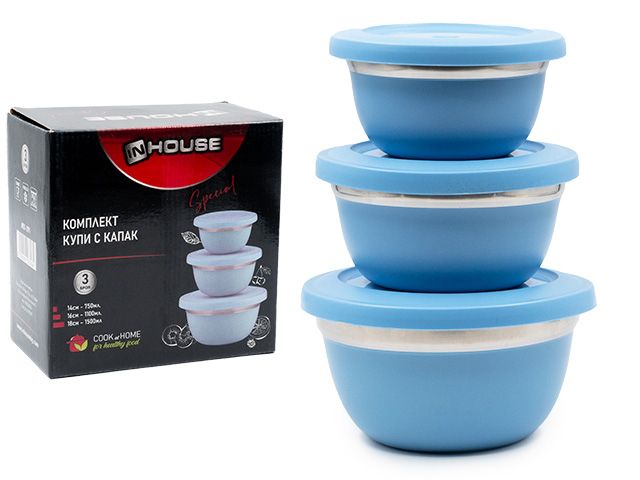 КУПА С КАПАК КОМПЛЕКТ 3 БР. СИНЬО 14/16/18 СМ