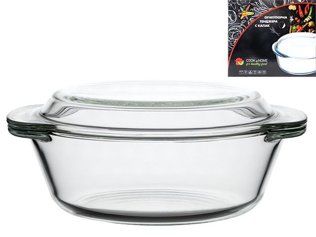 ТЕНДЖЕРА С КАПАК ОГНЕУПОРНО СТЪКЛО 23/21СМ. 1.5Л. КРЪГЛА