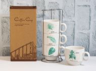 Комплект от 4 чаши с дръжка на удобна стойка, декорирани с мотив Листа.