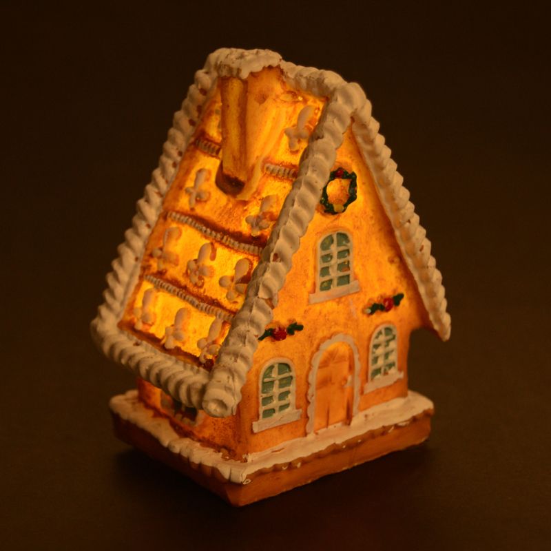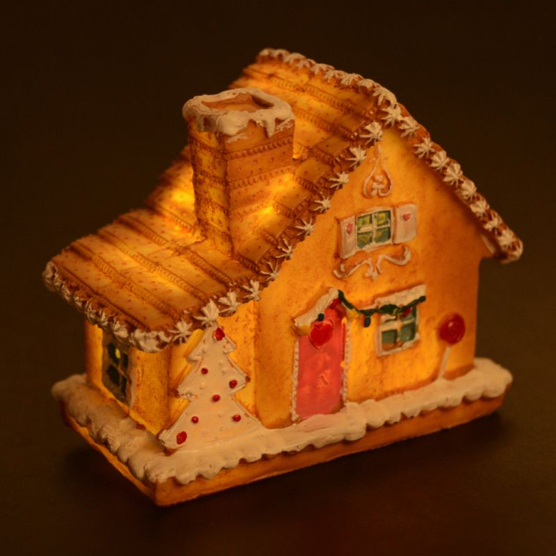 Изработена от висококачествен полирезин, тя е внимателно декорирана с коледни мотиви, сладки детайли и покрив, оформен като бисквитки със сметана.