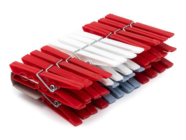 Комплект 24 дървени щипки – практични и универсални за сушене на дрехи, закрепване на пакети или декоративни проекти.