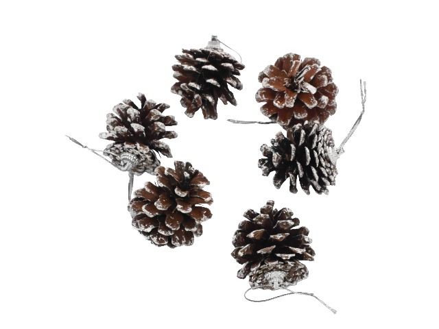 Коледна декорация „Шишарки“ – комплект от 6 броя заснежени шишарки за елха, маса или празничен декор.