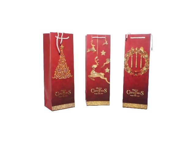 КОЛЕДНА ПОДАРЪЧНА ТОРБИЧКА ЗА ВИНО 12/10/36СМ. ВЕСЕЛА КОЛЕДА
