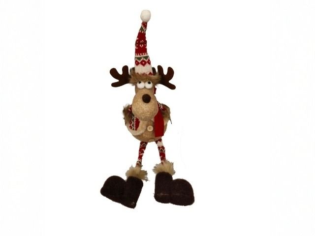 Коледна фигура „Еленът Смайли“ 52/15/9 см с висящи крака – забавен и декоративен аксесоар за празнична украса.