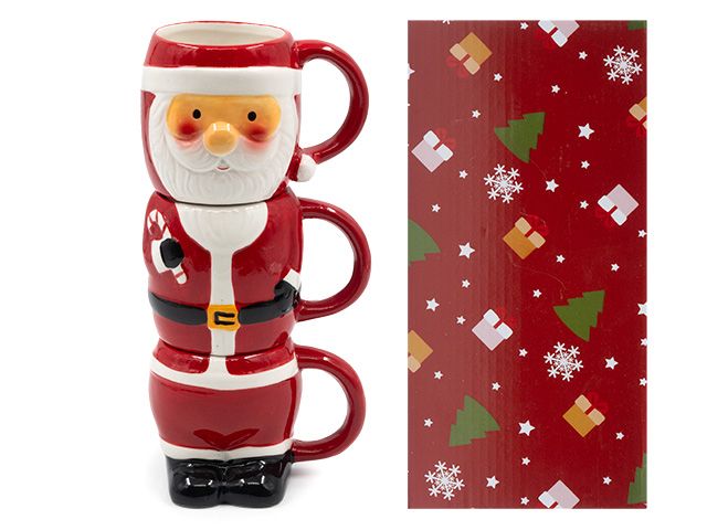 Комплект от 3 коледни чаши с дръжка, декорирани с весел Дядо Коледа.