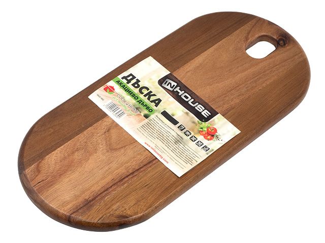 Дъска от масивно акациево дърво с размери 40×17.5×1.2 см – тънка, здрава и стилна за рязане и сервиране на различни храни.