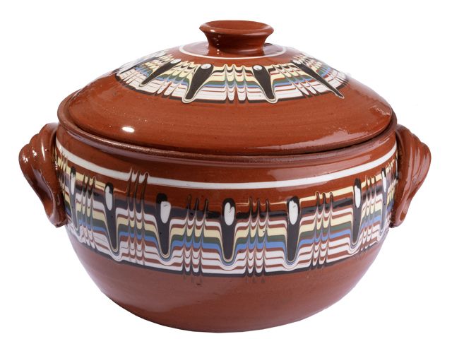 Гювеч с вместимост 3 литра с традиционна троянска шарка – идеален за готвене на ястия във фурна или на котлон.