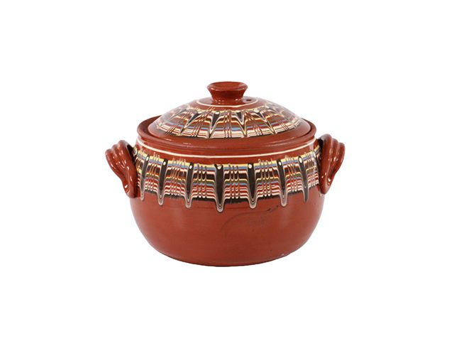 Гювеч с вместимост 4 литра с традиционна троянска шарка – подходящ за приготвяне на ястия във фурна или на котлон.
