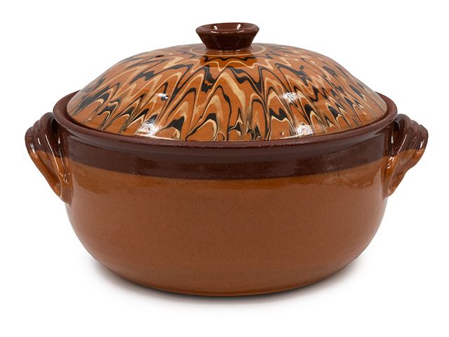 Изработен от висококачествена керамика, която разпределя топлината равномерно и запазва вкуса и аромата на храната.