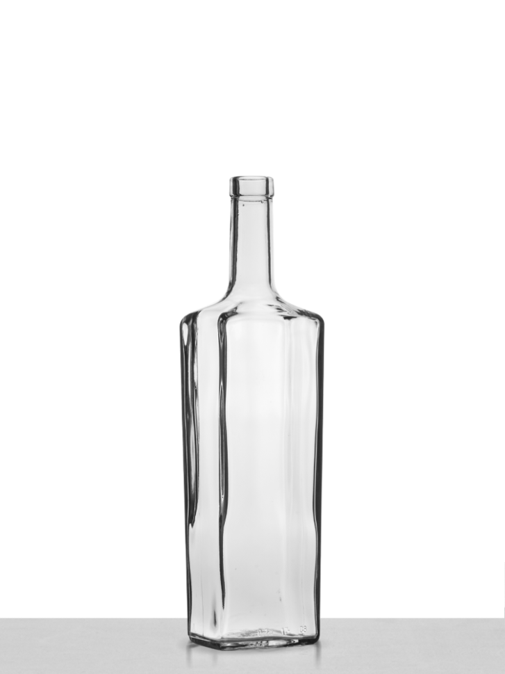 Стъклена бутилка с правоъгълна форма.