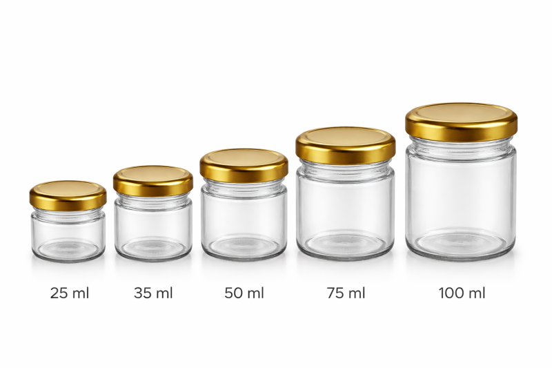 Стъклено бурканче 35 мл с метална винтова капачка – практичен и елегантен съд за съхранение на различни продукти.