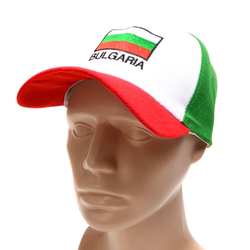 Лятна памучна шапка с козирка, декорирана със знамето и надпис Bulgaria. Удобен и стилен аксесоар с регулируем размер, подходящ за ежедневие, спорт и пътуване. Идеален избор за подарък или сувенир от България.