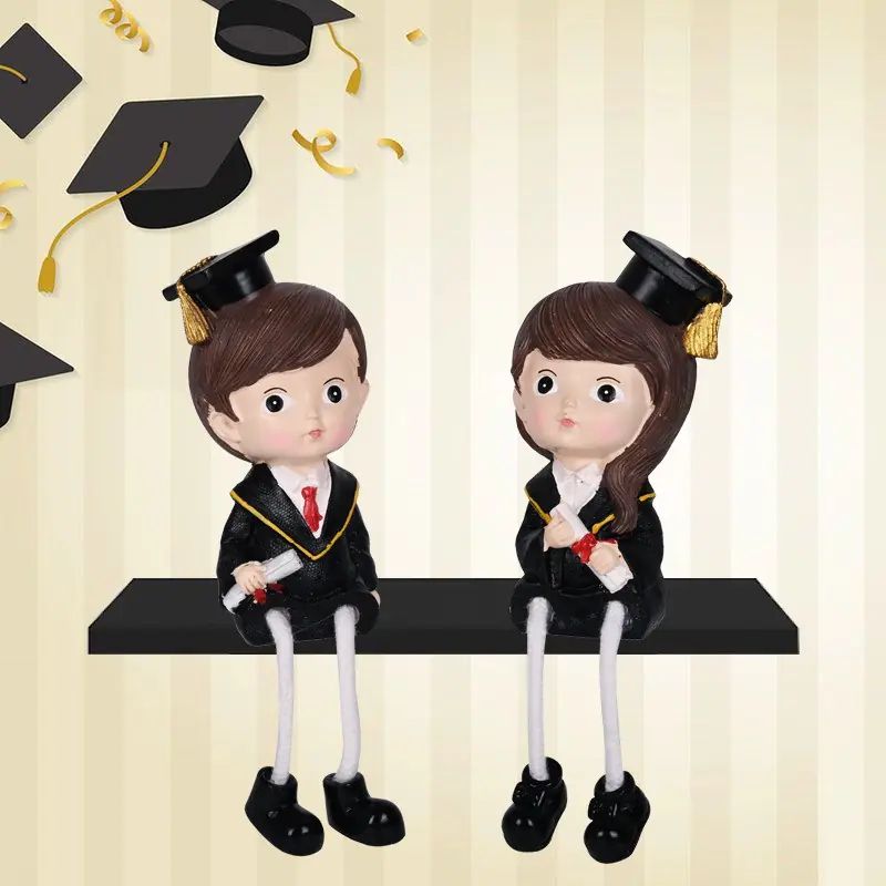 Фигурки „Дипломиране“ с висящи крачета, изработени от резин, с размер около 19 см.