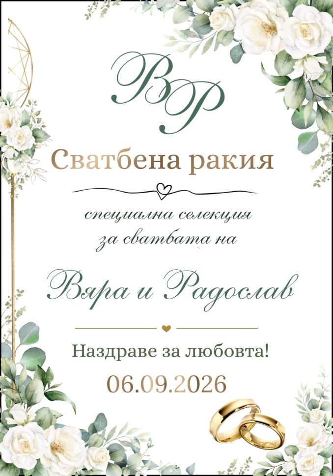 Заплаща се еднократна такса за добавяне на имена , дати и дребни корекции от 2.56 EUR / 5лв , при избор от посочените дизайни .