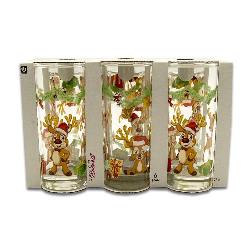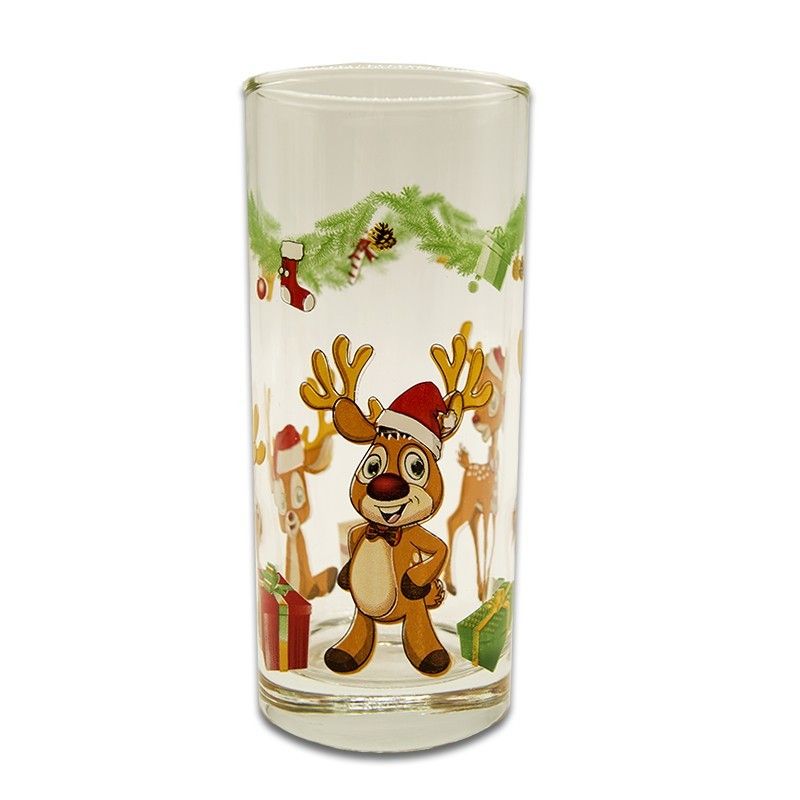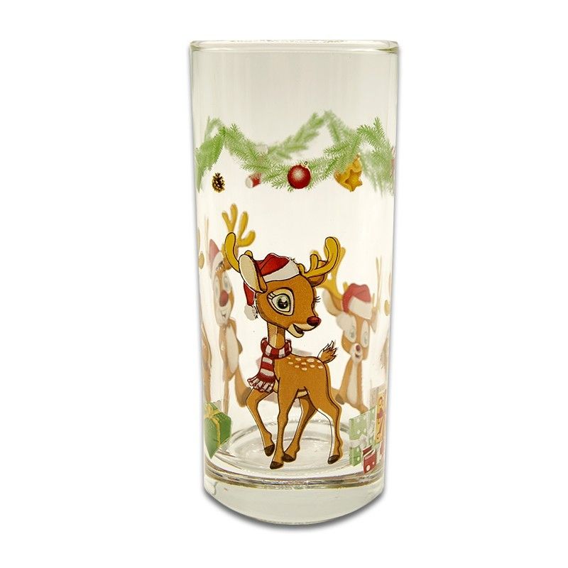 Внесете коледен дух у дома с тази изящна стъклена чаша с декор на еленчета.